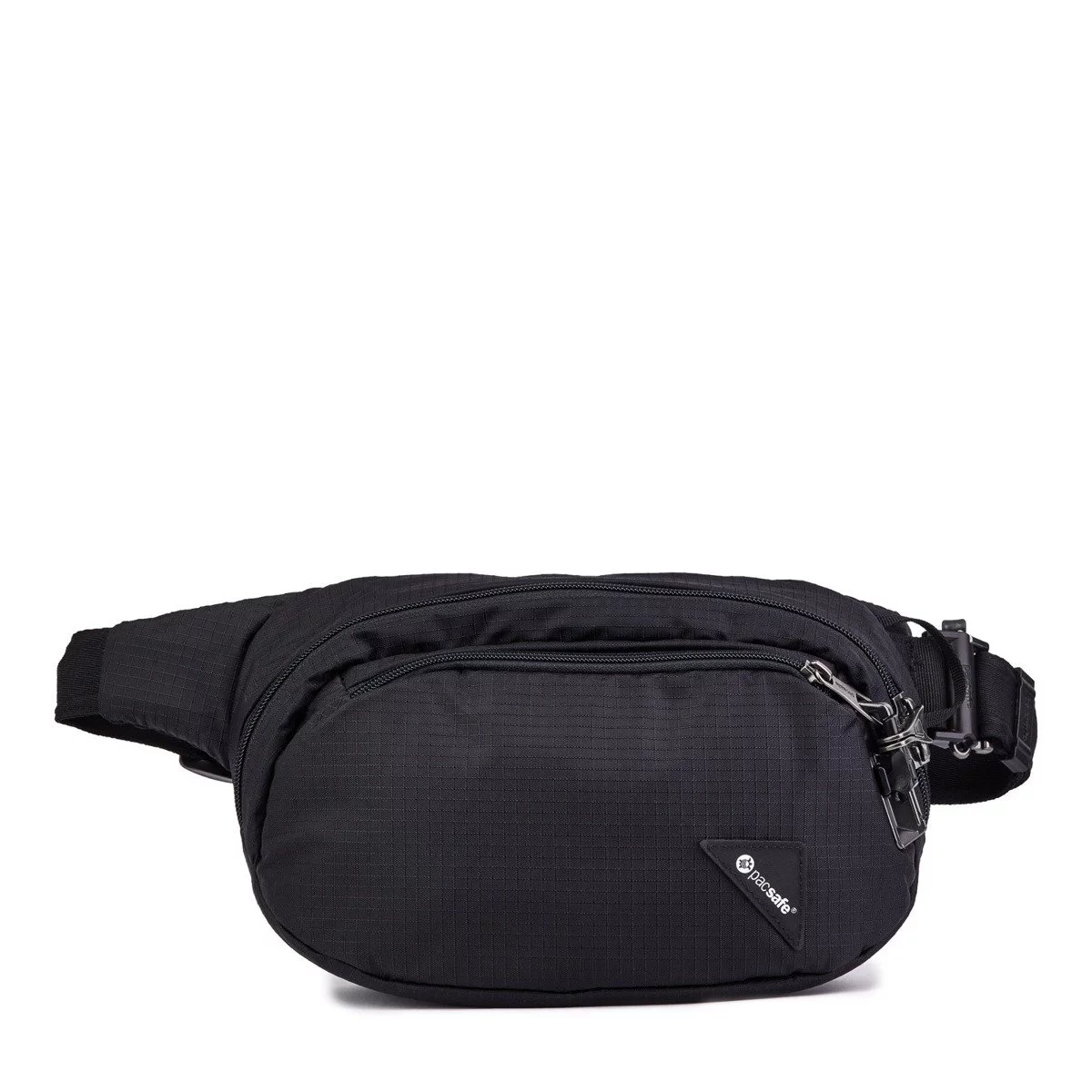 Pacsafe Vibe 100 to pojemna biodrówka saszetka antykradzieżowa, z membraną blokującą fale radiowe RFID, panelami Exomesh, paskiem odpornym na przecięcie oraz samoblokującymi się suwakami z zabezpieczeniem Robbar V.
