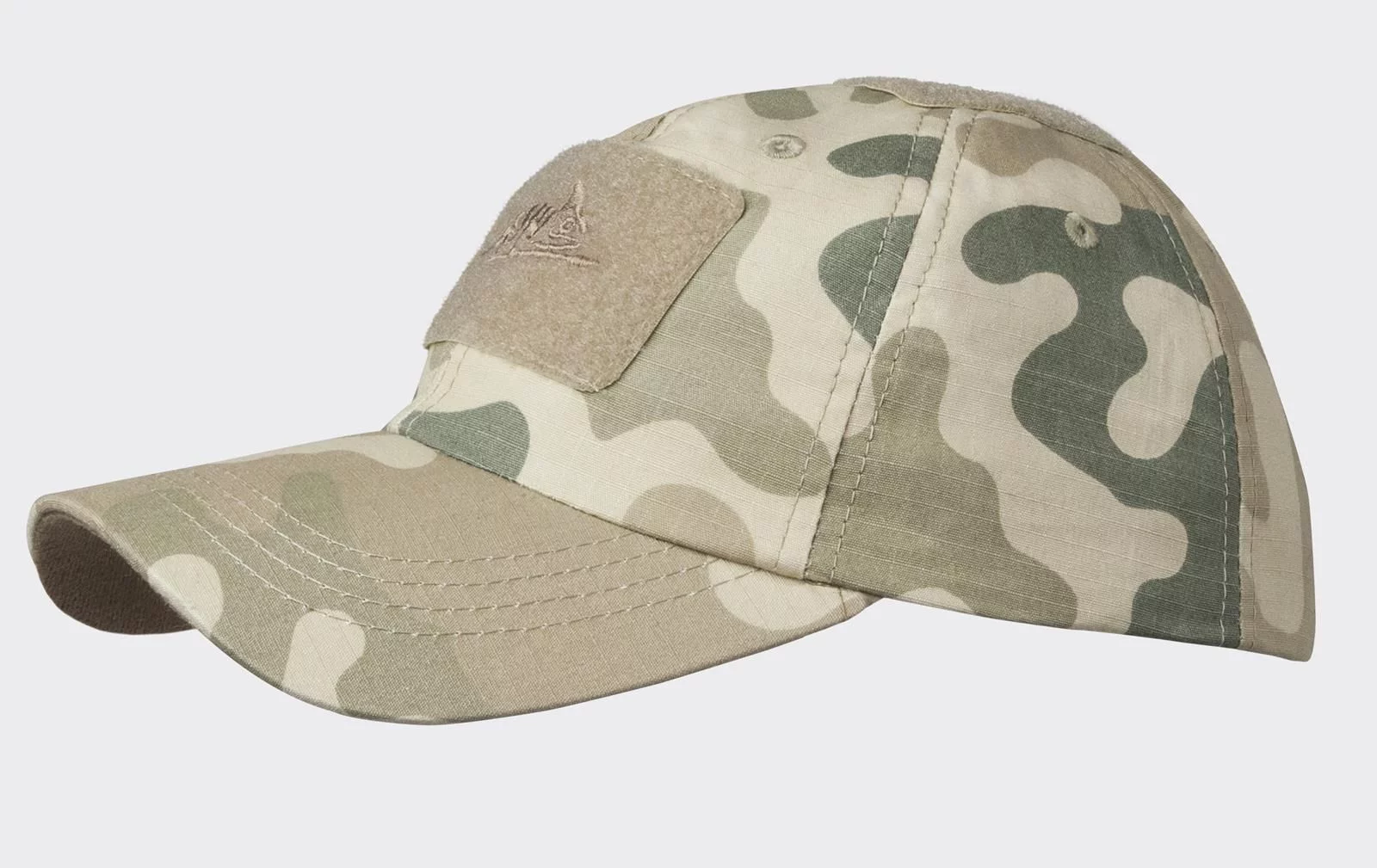 Regulowana czapka baseballowa wyposażona w panele Velcro dla łatwej personalizacji. Czapka współpracuje z ochronnikami słuchu oraz innym taktycznym oporządzeniem nagłownym.