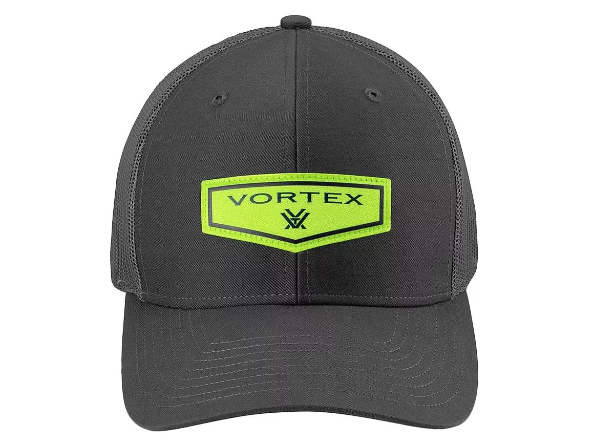 Czapka ma stonowaną kolorystykę, subtelnie ożywioną jaskrawozielonym logotypem Vortex, dlatego będzie nam mogła towarzyszyć nie tylko na strzelnicy i trekkingu, ale także w drodze do pracy i wypadu do pubu.