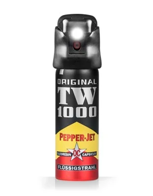 Gaz pieprzowy TW1000 Pepper-Jet generuje balistyczny strumień cieczy o bardzo dużym zasięgu, który umożliwia precyzyjne rozpylenie.