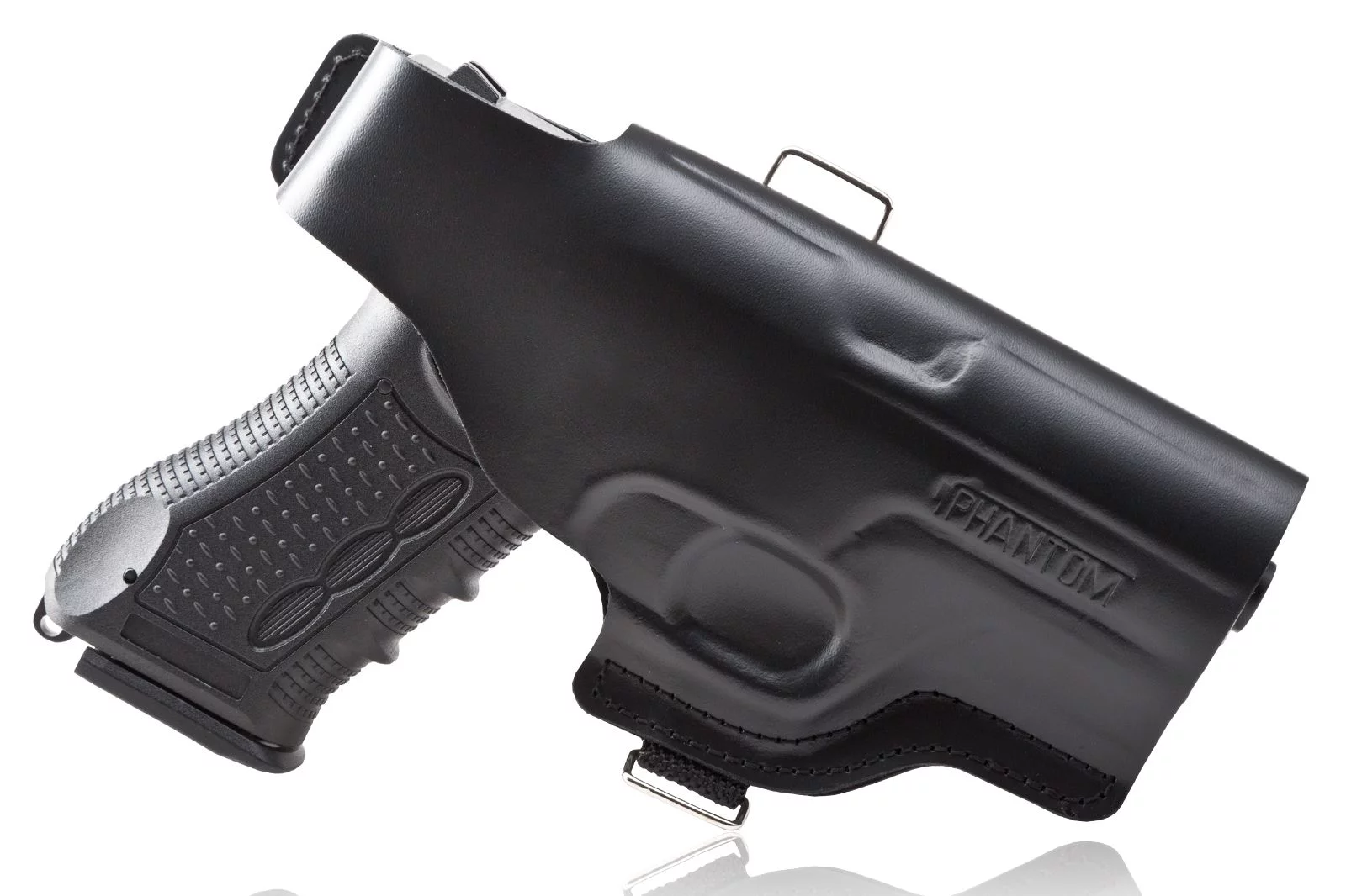 Kabura jest dokładnie spasowana do pistoletu Phantom, skóra jest bowiem specjalnie tłoczona pod kształt pistoletu.