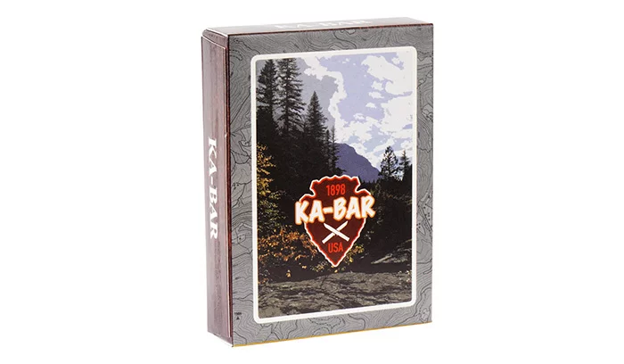 Karty do gry KA-BAR są odporne na wodę (i inne napoje). Wykonane z białego PVC, posłużą jednocześnie jako oznaczenia szlaków, pozwalając na tworzenie własnych tras (amerykański system znakowania).