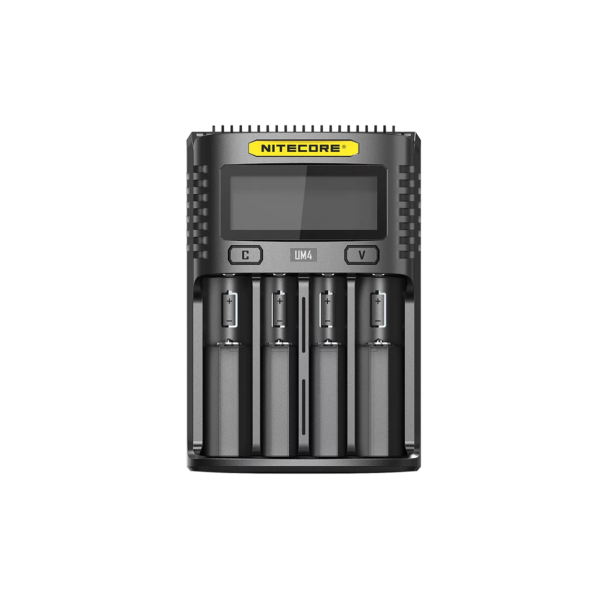 Nitecore UM4 to inteligenta ładowarka dedykowana do akumulatorów w technologii IMR/Li-Ion/LiFePO4 oraz Ni-MH/Ni-Cd w różnych rozmiarach i pojemnościach.