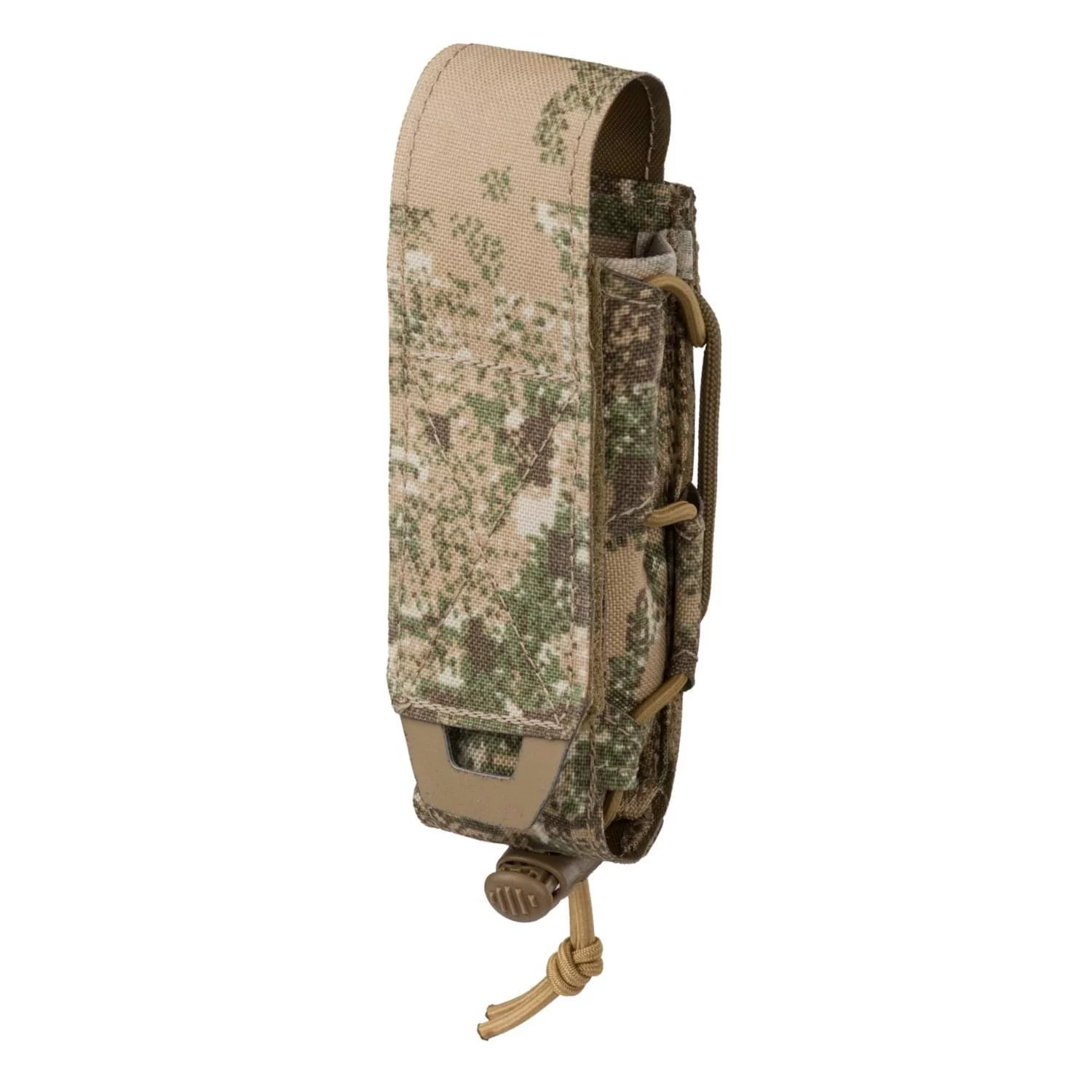 Prosta, jednokomorowa konstrukcja kieszeni zapewnia łatwy dostęp do magazynka. Pomieści jeden magazynek dwurzędowy, a siła retencji regulowana jest zewnętrzną pętlą z shockcordu.