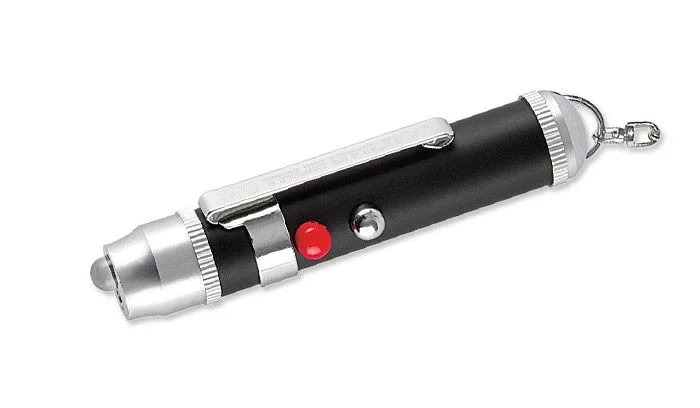 LaserLite to poręczna, niewielkich rozmiarów latarka i wskaźnik laserowy w jednym - produkt znanej brytyjskiej marki True Utility, producenta pomysłowych, kieszonkowych mini-narzędzi. W niewielkiej obudowie znajduje się latarka wyposażona w diodę LED i wskaźnik laserowy posiadający czerwoną wiązkę. Narzędzie uruchamia się za pomocą dwóch dobrze oznaczonych przycisków. Źródłem zasilania są trzy dołączone do zestawu baterie LR44. W zestawie znajduje się także zdejmowany klips ze stali i obrotowy karabinek, pozwalający na szybkie odpięcie akcesoriów od breloka z kluczami. Podobnie jak wszystkie inne produkty tej marki, LaserLite zapakowany jest w przezroczyste, trwałe pudełko z kompozytu. Można je wygodnie otworzyć jedną ręką. Solidna gumowa uszczelka świetnie chroni przed zamoknięciem przedmioty, które można wygodnie przechowywać w pudełku. Zlokalizowany na jego wieczku zaczep pozwala na przypięcie zabezpieczającej smyczy.