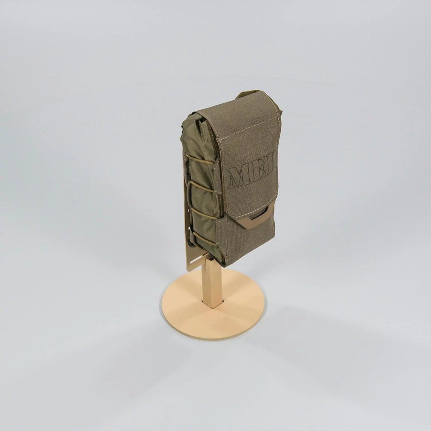 Wąska, pionowa konfiguracja indywidualnej apteczki pierwszej pomocy. Ten trzyczęściowy IFAK został zaprojektowany tak, aby pasował do panelu bocznego chest rigu lub na pasku - zabierając podobną nieruchomość PALS jak woreczek na magazynek.