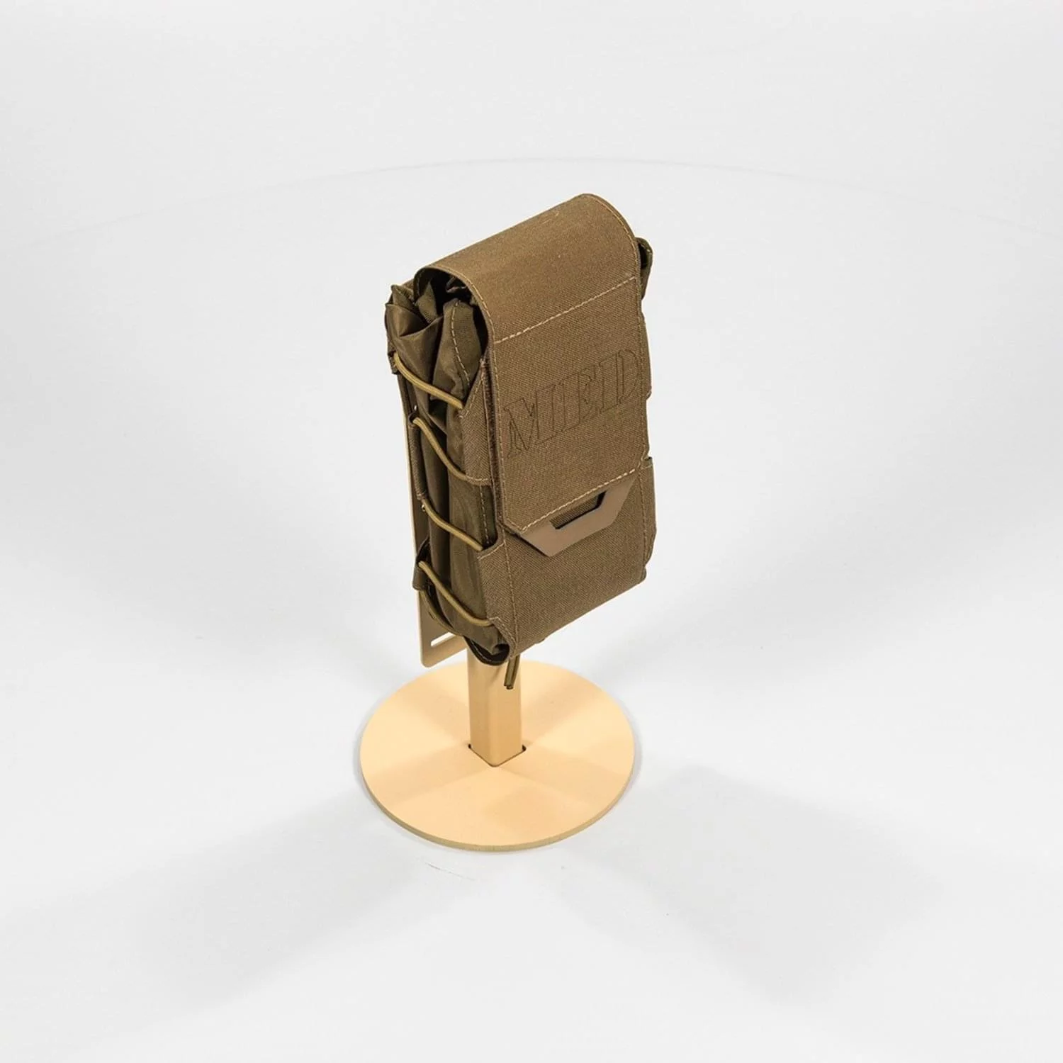 Wąska, pionowa konfiguracja indywidualnej apteczki pierwszej pomocy. Ten trzyczęściowy IFAK został zaprojektowany tak, aby pasował do panelu bocznego chest rigu lub na pasku - zabierając podobną nieruchomość PALS jak woreczek na magazynek.