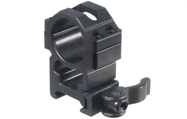 Montaż dwucześciowy wysoki 1''/weaver amerykańskiej firmy Leapers z serii UTG wykonany z bardzo twardych a zarazem lekkich lotniczych stopów aluminium. Montaż został wyposażony w system szybkiego montażu i demontażu.
