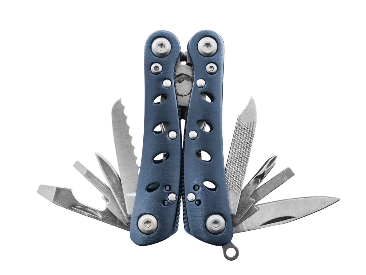 | Wbudowane narzędzia | kombinerki standardowe, otwieracz do butelek, ostrze gładkie, ostrze ząbkowane, pilnik, przebijak, przecinak do drutu, śrubokręt krzyżakowy, śrubokręt płaski |