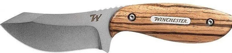Nóż Winchester Barrens to średniej wielkości nóż ze stałym ostrzem, idealny do polowania lub biwakowania. Konstrukcja z pełnym chwytem zapewnia dużą trwałość, zwiększoną wytrzymałość i większą precyzję dla wymagających użytkowników, a zakrzywione ostrze jest doskonałym kształtem np. do skórowania.