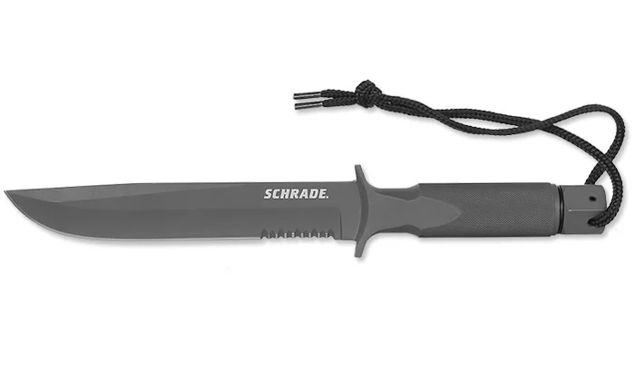 - Mocny nóż surwiwalowy wykonany z jednego kawałka stali wysokowęglowej SAE-1070.