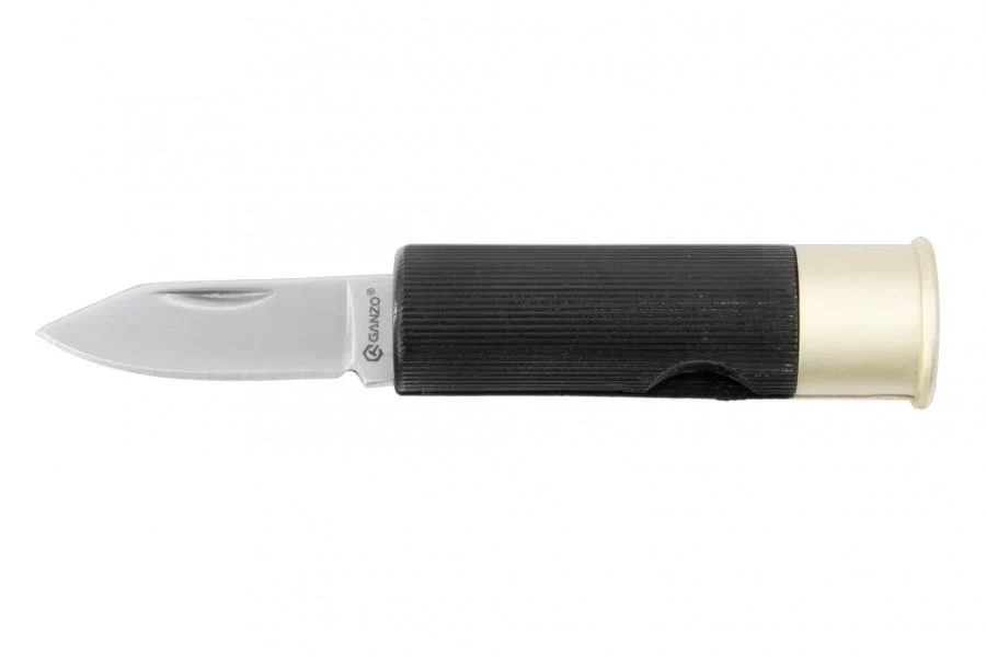 Mały nożyk firmy GANZO w kształcie amunicji śrutowej. Idealne rozwiązanie na prezent dla miłośników strzelectwa.