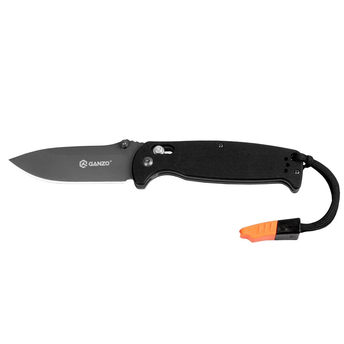 Ganzo G7413-BK-WS z gwizdkiem to poręczny nóż składany, w którym zastosowano głownię ze stali nierdzewnej 440C, sprawdzoną blokadą G-lock, obustronny kołek umożliwiający błyskawiczne rozłożenie ostrza jedną ręką oraz smyczkę z gwizdkiem sygnalizacyjnym.