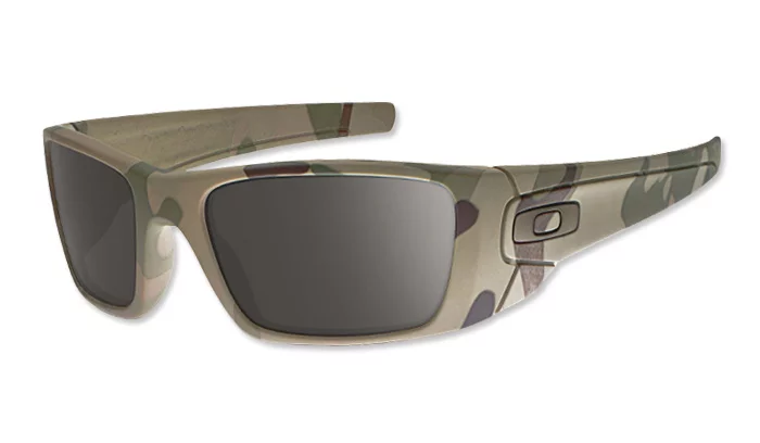 Ochronne okulary przeciwsłoneczne Oakley SI Fuel Cell z oprawką w licencjonowanym kamuflażu MultiCam oraz przyciemnianymi szkłami Warm Grey.