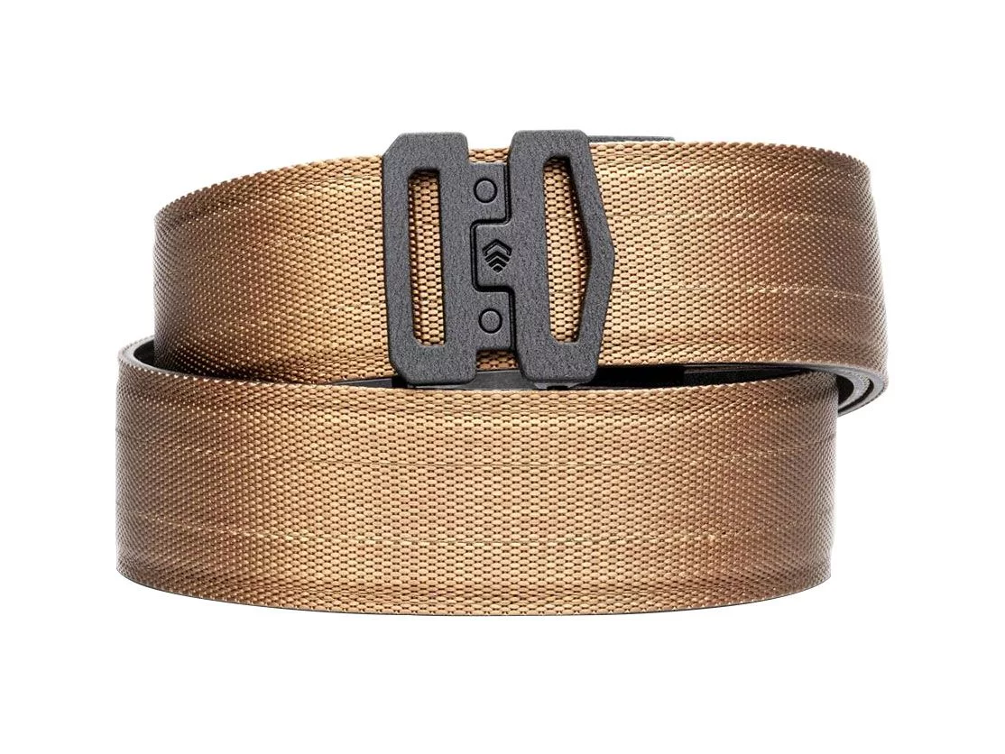 KORE Essentials G1 Garrison jasnobrązowy to twardy pas taktyczny do codziennego noszenia broni, który, w odróżnieniu od typowych pasów taktycznych nie przyciąga uwagi i doskonale pasuje do codziennego stroju.