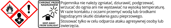 W zależności od tolerancji na kapsaicynę efekty działania gazu utrzymują się nawet do 45 minut, dając nam czas na oddalenia się i wezwanie pomocy.