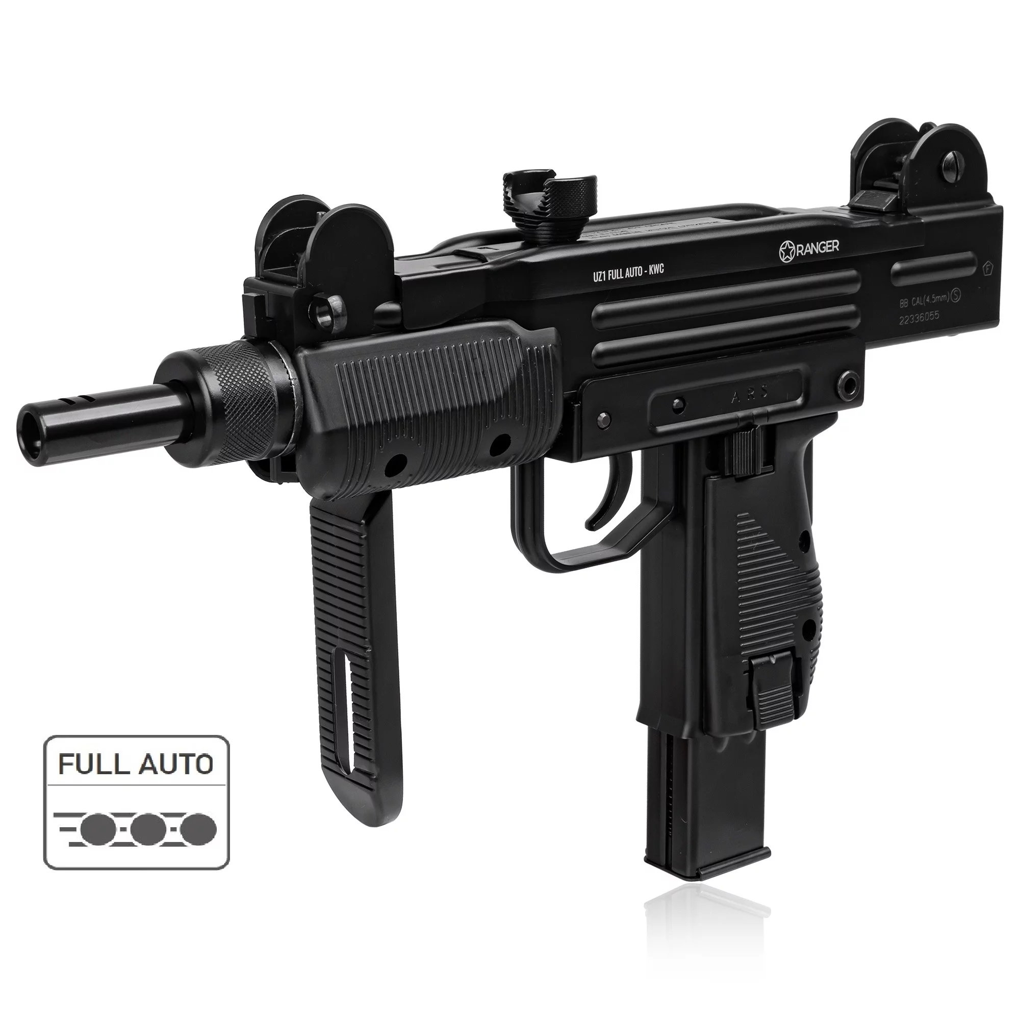 Pistolet maszynowy wiatrówka RANGER UZ1 SUBMACHINE FULL AUTO BLOWBACK kal.4,5 BBs 25-strzałowy HALF METAL KWC (AAKCMF070AZB)