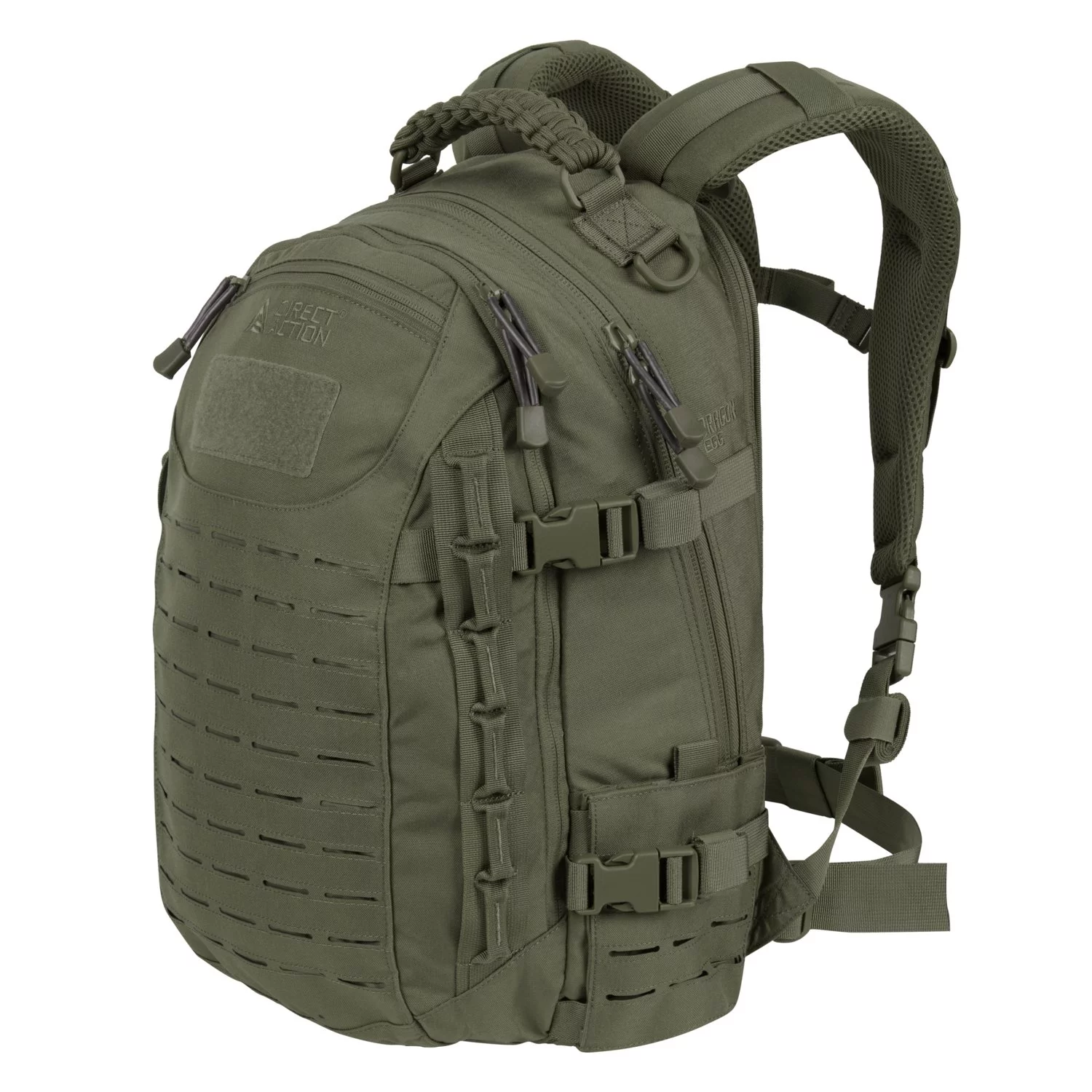Direct Action® Dragon Egg® to 25-litrowy patrolowy plecak, który sprawdzi się również w codziennym użytkowaniu. Posiada dwie kieszenie na wkłady hydracyjne, jedną w komorze głównej i dodatkową w zamykanej kieszeni tylnej, która, dzięki specjalnemu rękawowi może być, z powodzeniem wykorzystywana do bezpiecznego przenoszenia radiostacji lub 15'' laptopa. Przednia kieszeń, zbliżona wielkością do komory głównej, posiada prosty organizer i kieszeń siatkową. Boczne kieszonki umożliwiają przenoszenie płaskich i mały przedmiotów, a po otwarciu zamka zwiększają swoją obojętność. Direct Action® Dragon Egg® został pokryty wycinanym laserowo systemem kompatybilnym z MOLLE/PALS. Dzięki swojemu kształtowi plecak ma mniejsze wymiary niż plecaki o podobnej pojemności przez co znacznie ułatwia pracę z kamizelkami balistycznymi i oporządzeniem na pasie. System nośny plecaka został wyposażony w wewnętrzne usztywnienie pleców oraz miękkie, wygodne szelki. Specjalna konstrukcja systemu kanalików wentylacji oraz zastosowanie siatki dają efekt chłodzenia i znacznie poprawiają odchylność. Dzięki tej konstrukcji, plecak nie leży bezpośrednio na plecach użytkownika, co powoduje tworzenie się â€?kieszeni powietrza' pomiędzy plecakiem a placami i znacznie potęguje cyrkulację powietrza. Innowacyjny system wentylacyjny Combat Vent System® zastosowany w plecaku daje niespotykany dotychczas komfort noszenia. CVS® składa się z odpowiednio wyprofilowanych, piankowych paneli z dużą liczbą kanalików wentylacyjnych. Ich konstrukcja, w połączeniu z siatką, którą są obszyte panele, powoduje, że plecak nie przylega bezpośrednio do pleców. Dzięki temu poprawia się cyrkulacja powietrza, co daje efekt chłodzenia i zapobiega poceniu się, a użyta sztywna pianka zapewnia wygodne i stabilne układanie się plecaka.
