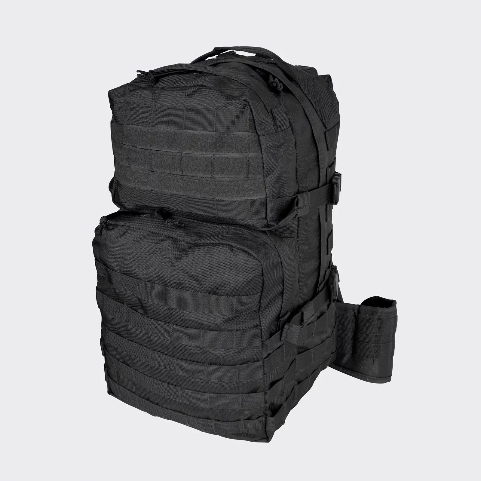 Produkt firmy Helikon składa się z trzech komór. Komora główna wyposażona jest w kieszeń na wkład hydracyjny. System umożliwia wprowadzenie i wyprowadzenie do plecaka rurki poprzez specjalny otwór. Takie rozwiązanie pozwala aby w sytuacji awaryjnej plecak spełniał również funkcję radiostacji. Komora główna zapinana jest na dwukierunkowy zamek oraz dodatkową przegrodę kontrolowaną za pomocą ściągacza. Wyposażona jest również w płaskie dodatkowe kieszenie. Dwie następne komory urozmaicone są w organizery umożliwiające wygodne i bezpieczne przenoszenie ekwipunku. Odpowiednie rozplanowanie organizerów zwiększa pojemność oraz funkcjonalność plecaka. Plecak posiada również taśmy mocujące w systemie Molle oraz system stabilizujący. Profilowane szelki zapewniają wygodę, zaś demontowany pas biodrowy pomaga zachować równowagę.