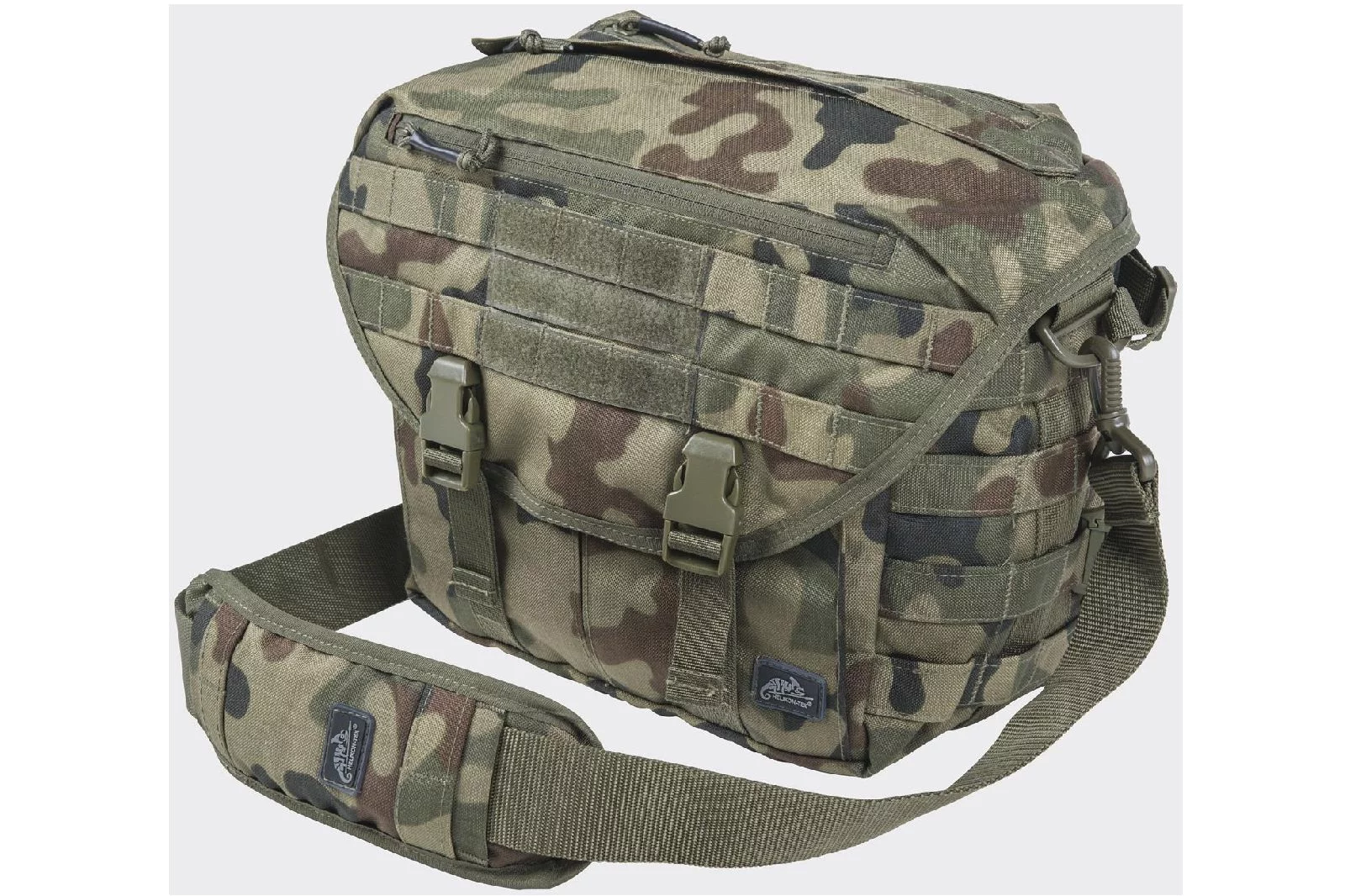 Cechy produktu: • Wymiary: 38x29x19cm • Szybki dostęp do komory głównej przez otwarcie na zamek • Obszerna klapa zabezpieczająca zawartość komory głównej przed brudem i wodą. Zapinana na klamry. • Wewnętrzna kieszeń dostosowana do przenoszenia notebooka 10'' lub tabletu • Wewnętrzna kieszeń z siatki • Dwie wewnętrzne kieszenie boczne • Kieszeń wewnętrzna z czterema przegrodami i karabinkiem • Trzy kieszenie zewnętrzne zapinane na zamek • Regulowany pas na ramię z miękką podkładką antypoślizgową (długość 120 cm, szerokość 5 cm) • Uchwyt umożliwiający zastosowanie torby jako Grab-Bag • Velcro dla łatwej personalizacji • Wewnętrzne uchwyty z elastycznej taśmy • Wewnętrzny i zewnętrzny system MOLLE/PALS100% Poliester
