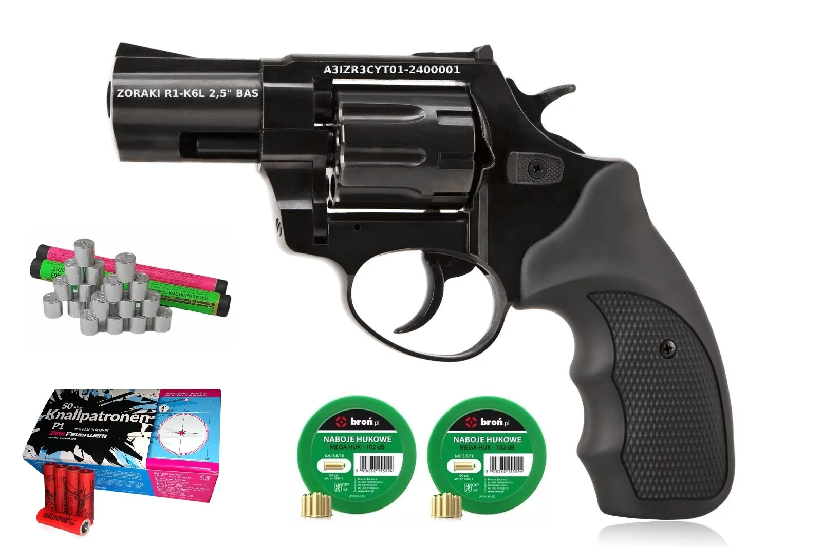 ZESTAW SYLWESTROWY - Rewolwer hukowy ZORAKI R1-K6L-BAS .22 Long Blank / 6mm long +naboje Mega Huk-200 +race huk50 +race kolor20